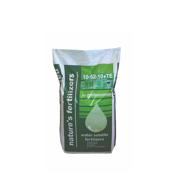 این کود حاوی 10 درصد نیتروژن، 52 درصد فسفر و 10 درصد پتاسیم می باشد. کود پودری 10-52-10 نیچر به عنوان یک کود کامل شناخته می شود. یعنی علاوه بر داشتن عناصر ماکرو؛ حاوی عناصر میکرو به فرم کلات مانند بر، آهن، روی، مس و مولیبدن است. این کود به صورت پودری و دارای فرمولاسیون خاص است که سبب می شود کاملا محلول در آب باشد و بتوان از آن در انواع کشت ها استفاده کرد.