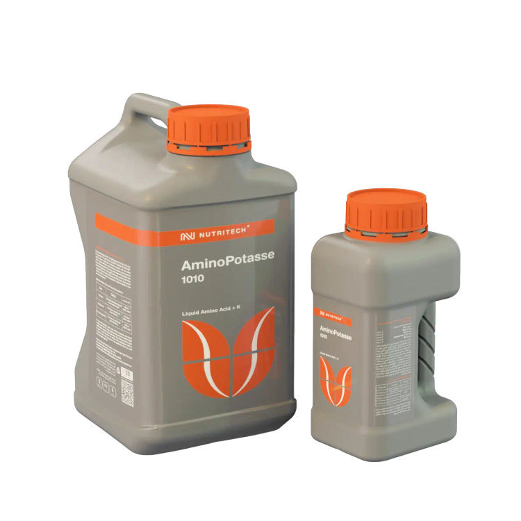 کود آمینو پتاس نوتری تک حاوی آمینو اسید به همراه پتاسیم میباشد. این کود حاوی 10 درصد پتاسیم محلول در آب (K2O) و 10 درصد اسید آمینه آزاد است. آمینو پتاس موجب بهبود عملکرد در شرایط استرسهای محیطی اعم از شوری، دمای بالا و خشکی، به خصوص در مراحل بحرانی مانند گلدهی، میوهدهی و رشد میوه میشود. این کود همچنین مقاومت گیاهان را در برابر تنشهای اقلیمی و شوری افزایش میدهد. در این کود، فرایندهای شیمیایی طوری صورت میگیرد تا بیشترین اسید آمینه آزاد در ترکیب حفظ شود. در ترکیب این کود ماکرو از مواد حفاظت کننده برای پایداری بیشتر اسید آمینه استفاده شده است. مصرف کود آمینوپتاس موجب بهبود گلدهی و میوهدهی و کاهش ریزش آنها میشود و به هم رسی یکسان و بهبود طعم و بازارپسندی محصولات کمک میکند.