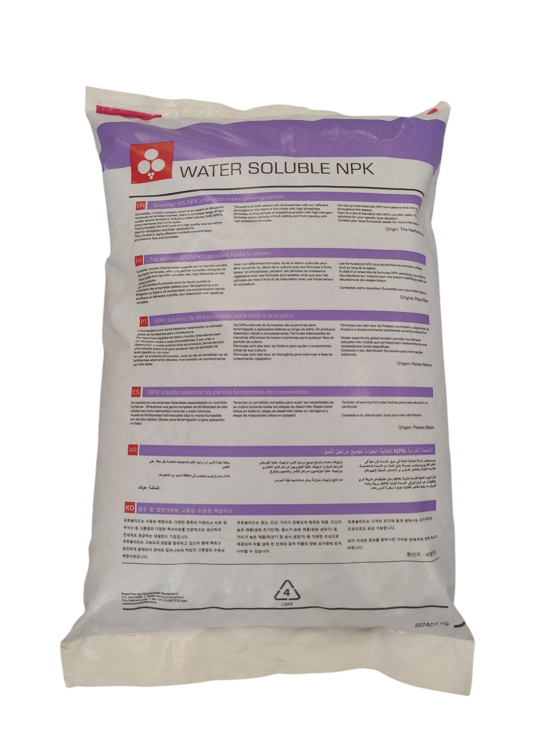 10-53-10 یوروسالیدزیک کود کامل پودری با فرمولاسیون فسفر بالا است که توسط شرکت یوروسالیدز هلند تولید می شود.. این کود حاوی عناصر اصلی نیتروژن، فسفر و پتاسیم به همراه ریزمغذیهاست و برای استفاده در برنامه غذایی گیاهان توصیه میشود