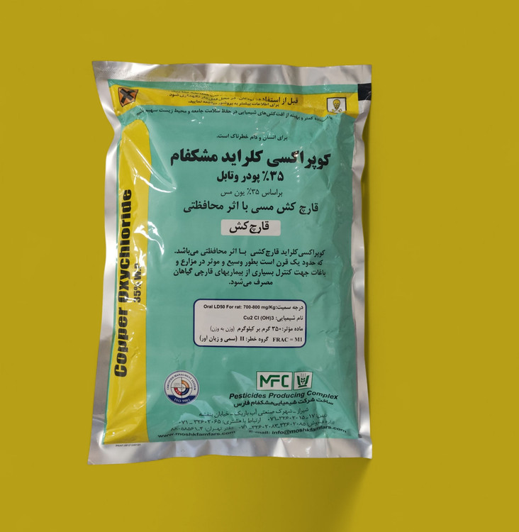 اکسی کلرور مس یا کوپر اکسی کلراید محصول شرکت مشکفام فارس، یک قارچکش و باکتریکش معدنی با طیف اثر وسیع است