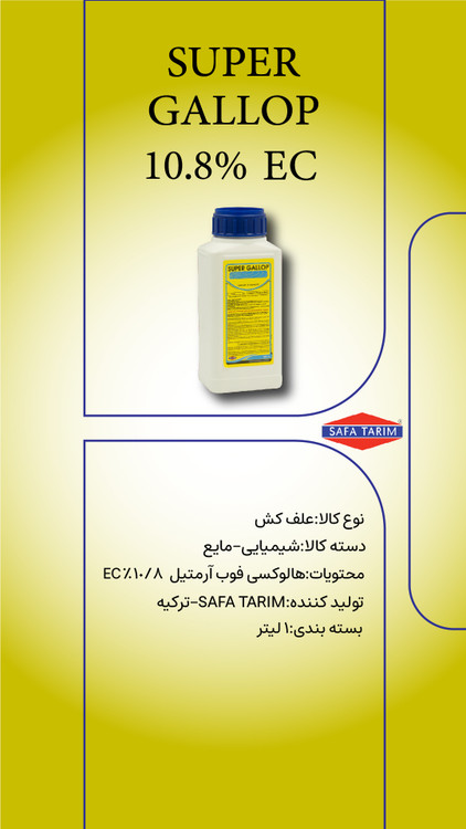 سوپر گالوپ علفکشی انتخابی و نفوذی، بازدارنده استیل کوآنزیم آ کربوکسیلاز (ACCase) و فوپها (AOPPs) میباشد. این علفکش از طریق برگ و ریشه جذب و قابلیت انتقال آن در گیاه محدود است. زمان مصرف در مرحله دو تا پنج برگی علفهای هرز (قبل از ساقهدهی) باریک برگ میباشد. این علفکش در زمان رشد سریع گیاهان و شرایط بدون تنش بیشترین تاثیر را خواهد داشت