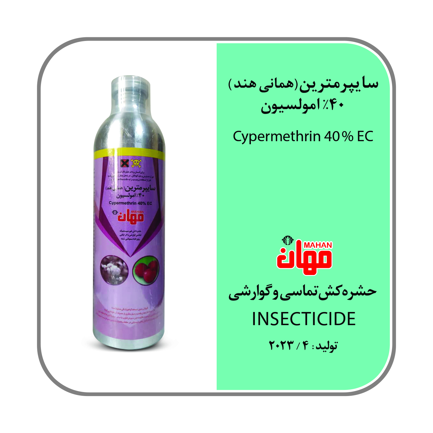 حشره کش سایپرمترین ۴۰% نیم لیتری هندی مهان-گارانتی اصالت و سلامت فیزیکی کالا